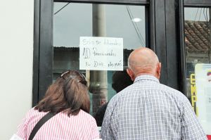 En la puerta del Banco del Pueblo Soberano, de Porlamar Municipio Mariño Isla de Margarita, Estado Nueva Esparta, reposa un papel que dice que sólo atenderán a diez pensionados por día, una situación que generó controversia entre los habitantes que desde el día anterior se apostaron en la entrada de la entidad financiera para entregar la proforma y hacer sus transacciones.